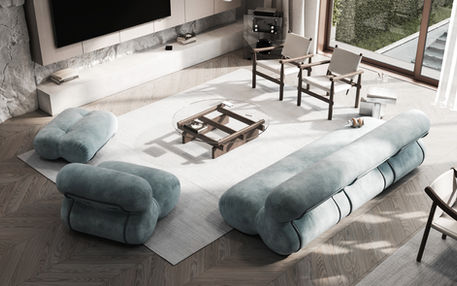 In this Maison de Rêve villa, an open-plan living space merges seamlessly with an outdoor terrace and pool. Bedrooms occupy the first floor, while a penthouse suite with a balcony and bathing area crowns the top. Calm materials and soft neutrals reflect a modern, comforting ambiance.